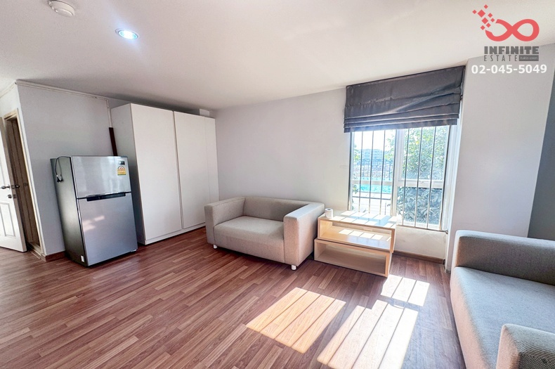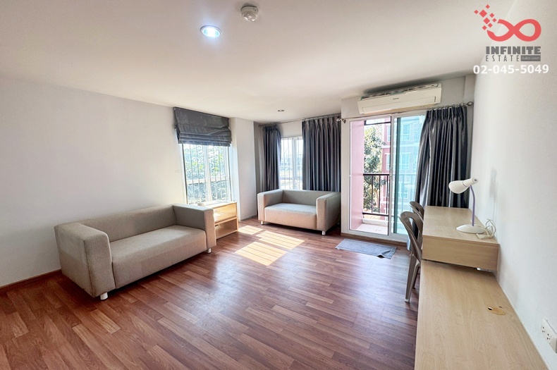 ตกแต่ง : บิ้วอินเฟอร์นิเจอร์บางส่วน เตียงนอน 2 ชุด / ผ้าม่าน /ตู้เย็น / โต๊ะทำงาน