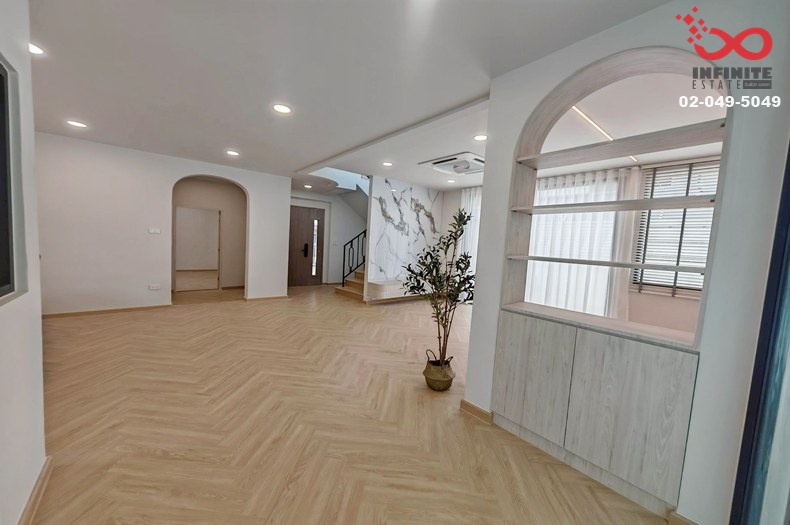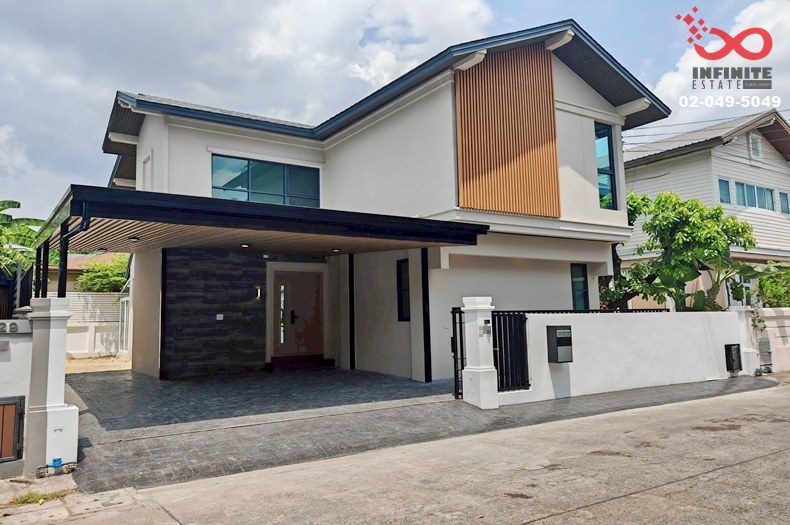 รีวิว : บ้านสวยรีโนเวทใหม่ทั้งหลัง ในย่านเลียบด่วนเอกมัย–รามอินทรา ฟังก์ชั่นครบ ตัวบ้านมีพื้นที่ใช้สอยกว้างขวางถึง 200 ตารางเมตร รองรับการใช้งานได้อย่างลงตัว พร้อมที่จอดรถภายในบ้านได้ 2 คัน ระบบไฟ 3 เฟส รองรับ EV Charger  ชั้นล่างออกแบบให้มีห้องนอน 1 ห้อง สามารถปรับใช้เป็นห้องทำงานได้ โดดเด่นด้วยโซน Glass House ด้านข้างบ้าน ให้บรรยากาศโปร่งโล่ง รับแสงธรรมชาติ เหมาะสำหรับทำเป็นห้องอเนกประสงค์ มุมพักผ่อน โซน Living Room ตกแต่งด้วยแอร์ฝังขนาด 36,000 BTU ห้องน้ำชั้นล่างออกแบบแยกส่วนเปียก–แห้ง พร้อม Shower และที่นั่งอาบน้ำ ชั้นบนประกอบด้วย 3 ห้องนอน และ 2 ห้องน้ำ ตัวบ้านตั้งอยู่ใกล้สวนสาธารณะและส่วนกลางของโครงการ บรรยากาศร่มรื่น