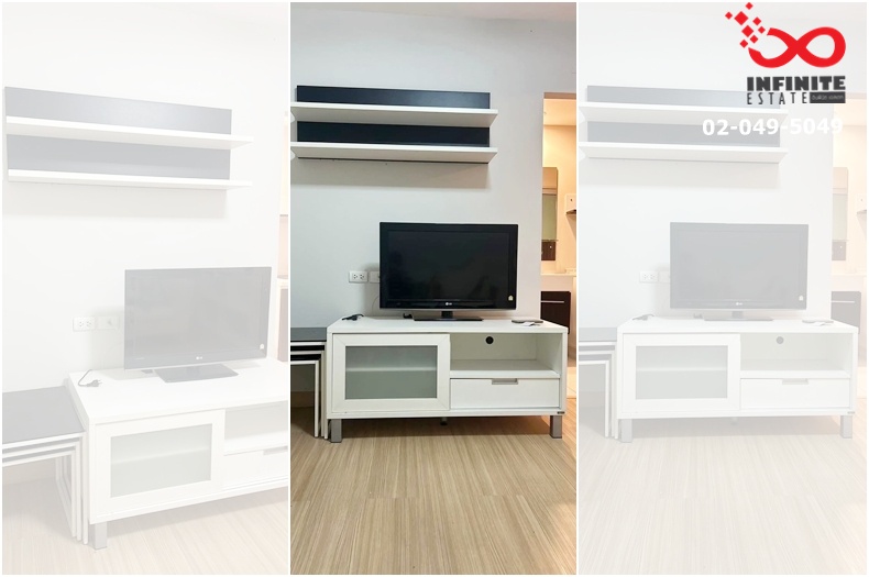 ตกแต่ง : แอร์ 1 เครื่อง, เตียงนอน, โซฟา, โทรทัศน์, ตู้เย็น, ครัวบิ้วอินท์