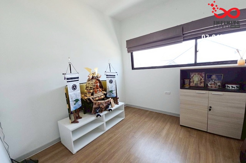 ตกแต่ง : แอร์ 5 เครื่อง / เครื่องทำน้ำอุ่น 2 เครื่อง / เตียงนอน 1 ชุด / โซฟา 1 ชุด / โต๊ะกินข้าว 1 ชุด / มุ้งลวด / เหล็กดัด / ผ้าม่าน / โทรทัศน์ / ตู้เย็น / แทงก์น้ำ