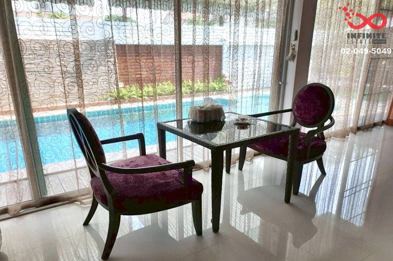 ตกแต่ง : บิวท์อินทั้งหลัง มีสระว่ายน้ำ ขนาด 3 x 10 เมตร
