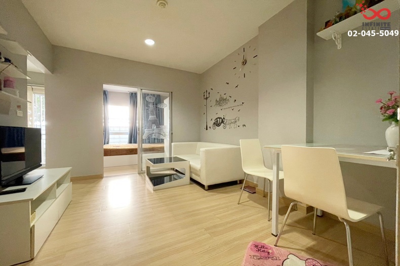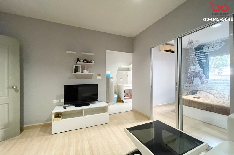ตกแต่ง : แอร์ 1 เครื่อง ครัวบิ้วอิน + โซฟา + เตียงนอน + ชั้นวางทีวี