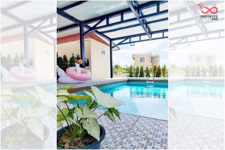 ตกแต่ง : แอร์ 5 เครื่อง สระว่ายน้ำ ห้องคาราโอเกะ ห้องครัว ที่จอดรถส่วนตัว ระเบียงชั้น 2 สำหรับชมวิวเขาใหญ่