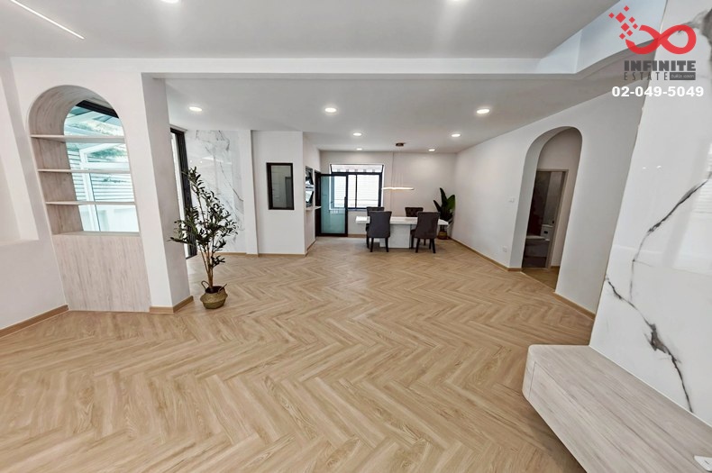 รีวิว : บ้านสวยรีโนเวทใหม่ทั้งหลัง ในย่านเลียบด่วนเอกมัย–รามอินทรา ฟังก์ชั่นครบ ตัวบ้านมีพื้นที่ใช้สอยกว้างขวางถึง 200 ตารางเมตร รองรับการใช้งานได้อย่างลงตัว พร้อมที่จอดรถภายในบ้านได้ 2 คัน ระบบไฟ 3 เฟส รองรับ EV Charger  ชั้นล่างออกแบบให้มีห้องนอน 1 ห้อง สามารถปรับใช้เป็นห้องทำงานได้ โดดเด่นด้วยโซน Glass House ด้านข้างบ้าน ให้บรรยากาศโปร่งโล่ง รับแสงธรรมชาติ เหมาะสำหรับทำเป็นห้องอเนกประสงค์ มุมพักผ่อน โซน Living Room ตกแต่งด้วยแอร์ฝังขนาด 36,000 BTU ห้องน้ำชั้นล่างออกแบบแยกส่วนเปียก–แห้ง พร้อม Shower และที่นั่งอาบน้ำ ชั้นบนประกอบด้วย 3 ห้องนอน และ 2 ห้องน้ำ ตัวบ้านตั้งอยู่ใกล้สวนสาธารณะและส่วนกลางของโครงการ บรรยากาศร่มรื่น